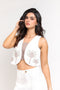 Blusa unicolor elaborada en viscosa suave, fresca y liviana, manga corta con escote en V; short elaborado en tejido plano liviano con elongación y estampación digital de tacto suave.