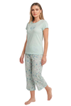 Blusa unicolor manga corta con estampado localizado; capri elaborado en tela con fibras de algodón, de tacto suave con estampación digital.