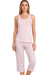 Blusa unicolor manga sisa con estampado localizado punto corazón; capri elaborado en tela con fibras de algodón, de tacto suave con estampación digital