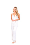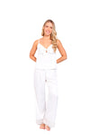 Nuestra pijama está diseñada para envolver tu cuerpo con una sensación de comodidad absoluta y libertad de movimiento. El pantalón ofrece un ajuste relajado, mientras que la blusa de tirantes aporta un estilo fresco y femenino, ideal para climas cálidos o para sentirte ligera en casa. Perfecta para dormir, descansar o relajarte con total comodidad, sin dejar de verte auténtica y estilizada.