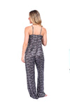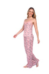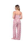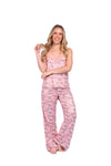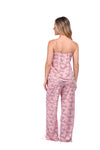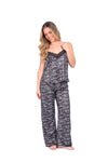 Set de pantalón elaborado en tejido de punto, efecto satín, de tacto frío y extra suave con estampación digital. Blusa de cargaderas graduables y silueta amplia con detalle de encaje en escote