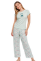 Set de pantalón en tela piel de durazno con estampación digital de tacto extra suave. Blusa de cargaderas graduables y silueta amplia.