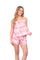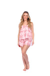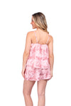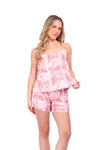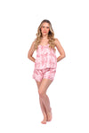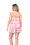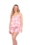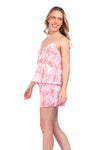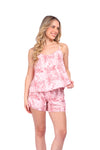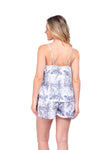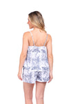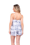 Set de short elaborado en tejido plano liviano con textura diagonal y estampación digital; blusa de cargaderas graduables y silueta amplia.