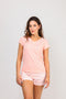 Nuestra pijama pantalón y manga corta, está confeccionada en una tela liviana y suave que acaricia tu piel, brindándote frescura y comodidad sin dejar de lado el estilo.