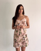 Batola elaborada en tejido plano satín, de tacto frío y extra suave con estampación digital, de silueta amplia con carderas anchas y detalle de nudo en escote.