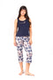 Set elaborado en mezcla de algodón, poliéster y spandex para una sensación fresca y flexible. La blusa presenta un estampado localizado encantador, mientras el capri, confeccionado en microfibra liviana de tacto suave, se completa con bolsillos funcionales y un estampado que le da un toque especial.