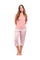 Con un diseño práctico y femenino, esta pijama combina una blusa unicolor de cuello redondo con un capri suave y liviano que se adapta a tu ritmo. El estampado sutil y los bolsillos funcionales suman estilo y comodidad, haciendo de este set tu aliado favorito para descansar con libertad y frescura.
