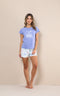 Esta pijama de pantalón y manga corta, confeccionada en una tela extra suave, te envuelve en una caricia ligera para que cada noche sea una experiencia de máximo confort.