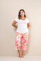 Blusa unicolor manga corta cuello V, con estampado localizado, short en tela piel de durazno con estampación digital de tacto extra suave.