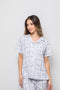 Blusa unicolor manga corta con estampado localizado, short en tela piel de durazno con estampación digital de tacto extra suave.