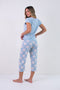 Disfruta de la comodidad y el estilo con el Pijama Short para mujer Azucena. La blusa con detalle de encaje en el escote y el short elaborado en tejido de punto con efecto satén, tacto frío y estampación digital te brindarán una sensación extra suave y fresca. ¡Luce única y cómoda al mismo tiempo!