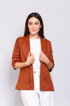 Ese blazer está confeccionada en una tela liviana de tacto ultra suave que acaricia tu piel, brindándote frescura y comodidad sin sacrificar el estilo.