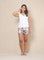 Descubre la comodidad y suavidad del pijama corto para mujer Astral. La blusa de manga corta presenta un recogido en el escote para un toque femenino, mientras que el short elaborado en tejido de punto con efecto satinado ofrece una sensación fría y extra suave. Además, su estampación digital le da un toque moderno y único. ¡No querrás quitártelo nunca!