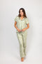 Chaleco fluido con estampado localizado de técnica especial, elaborado en tejido plano liviano, de tacto suave y fresco.