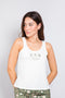 Blusa unicolor manga corta cuello V, con estampado localizado punto corazón, pantalón en tela de m9icrofibra liviana, de tacto suave con estampación digital.