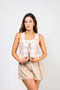 Nuestra pijama pantalón y camiseta manga sisa, está confeccionada en una tela liviana y suave que acaricia tu piel, brindándote frescura y comodidad sin dejar de lado el estilo.