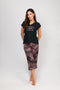 Set elaborada en tejido plano liviano con elongación y estampación digital de tacto suave. Blusa de silueta amplia y carderas anchas con delicada franja en ruedo; short con detalle en prenses en frente y bolsillos invisibles funcionales.