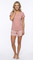 Blusa unicolor manga corta, cuello v con bolsillo; short elaborado en tejido plano liviano con elongación y estampación digital de tacto suave
