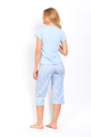 Set elaborado en mezcla de algodón, poliéster y spandex para una sensación fresca y flexible. La blusa presenta un estampado localizado encantador, mientras el capri, confeccionado en microfibra liviana de tacto suave, se completa con bolsillos funcionales y un estampado que le da un toque especial.