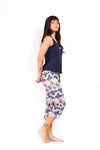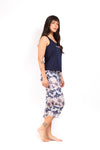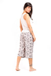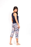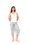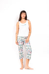 Con un diseño práctico y femenino, esta pijama combina una blusa unicolor de cuello redondo con un capri suave y liviano que se adapta a tu ritmo. El estampado sutil y los bolsillos funcionales suman estilo y comodidad, haciendo de este set tu aliado favorito para descansar con libertad y frescura.