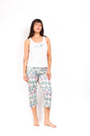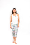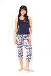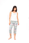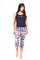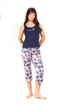 Set elaborado en mezcla de algodón, poliéster y spandex para una sensación fresca y flexible. La blusa presenta un estampado localizado encantador, mientras el capri, confeccionado en microfibra liviana de tacto suave, se completa con bolsillos funcionales y un estampado que le da un toque especial.