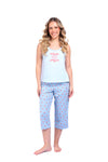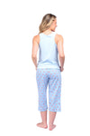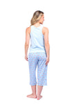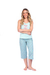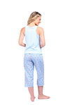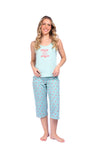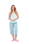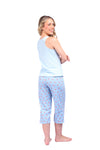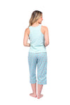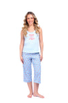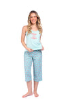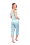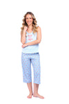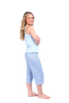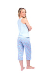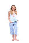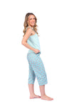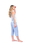 Blusa unicolor manga sisa con estampado localizado; capri elaborado en tela con fibras de algodón, de tacto suave con estampación digital.