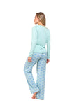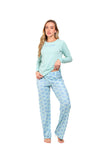 Blusa unicolor manga corta cuello "v" con estampado localizado en borde de escote; short en tela piel de durazno con estampación digital de tacto extra suave.