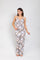 Set elaborado en tejido plano liviano con textura diagonal y estampación digital. Blusa de cargaderas graduables con detalle de tiras anudables en escote para mejorar el ajuste; pantalón de silueta amplia con bolsillos funcionales