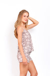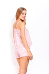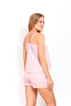 Nuestra pijama de short y blusa manga tirante envuelve tu cuerpo con una suavidad única y una caída elegante que acompaña cada movimiento. Perfecta para esos momentos de pausa donde la comodidad se encuentra con el estilo.