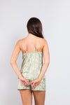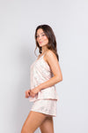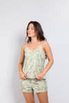 Nuestra pijama de short y blusa tirantes combina la ligereza que necesitas con detalles que marcan la diferencia. La blusa te brinda un estilo sutil y femenino, mientras el short en microfibra liviana con tacto suave se ajusta con delicadeza, como una segunda piel. Es ese equilibrio perfecto entre frescura, estilo y confort.