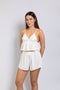 Set elaborado con una mezcla suave de poliéster, algodón y spandex para una experiencia ligera, flexible y envolvente. La textura del pantalón ofrece una sensación sedosa ideal para climas cálidos y fríos, y su diseño estampado suma un toque moderno y divertido.