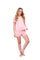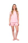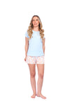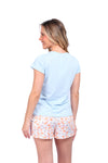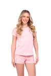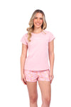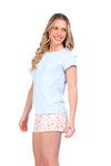 Blusa unicolor manga corta con estampado localizado; short en tela de microfibra liviana, de tacto suave con estampación digital