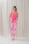 una mujer con pijama pantalon fucsia