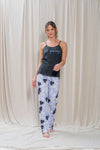 Pijama Pantalón Rolling para mujer La blusa de fondo entero tiene tiras graduables con las que puedes personalizar la medida. Su estampado localizado en el frente "still growing" (continúa creciendo) esta inspirado en la naturaleza y te hace una invitación a evolucionar constantemente, sus letras cursivas añaden un toque moderno y fresco.